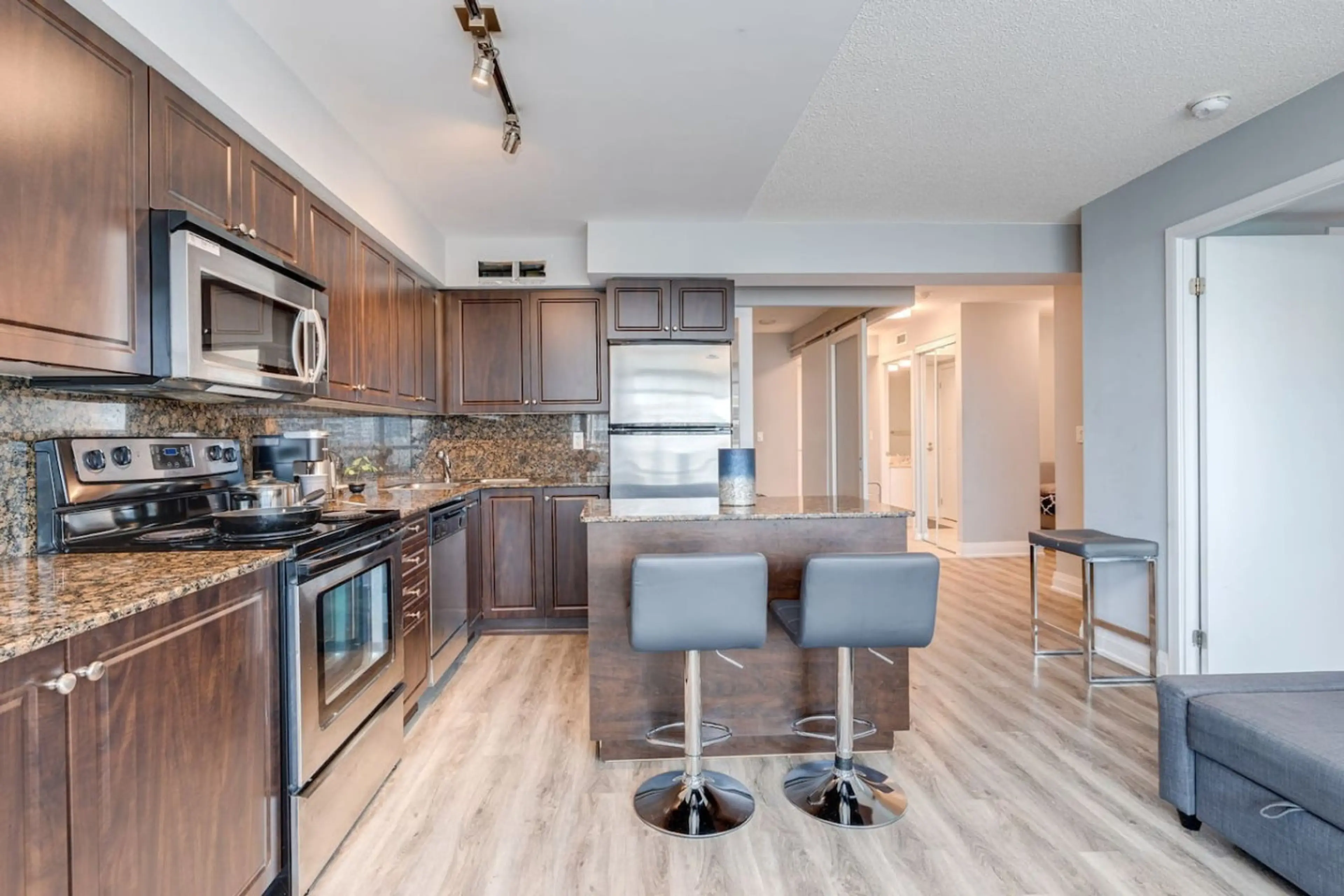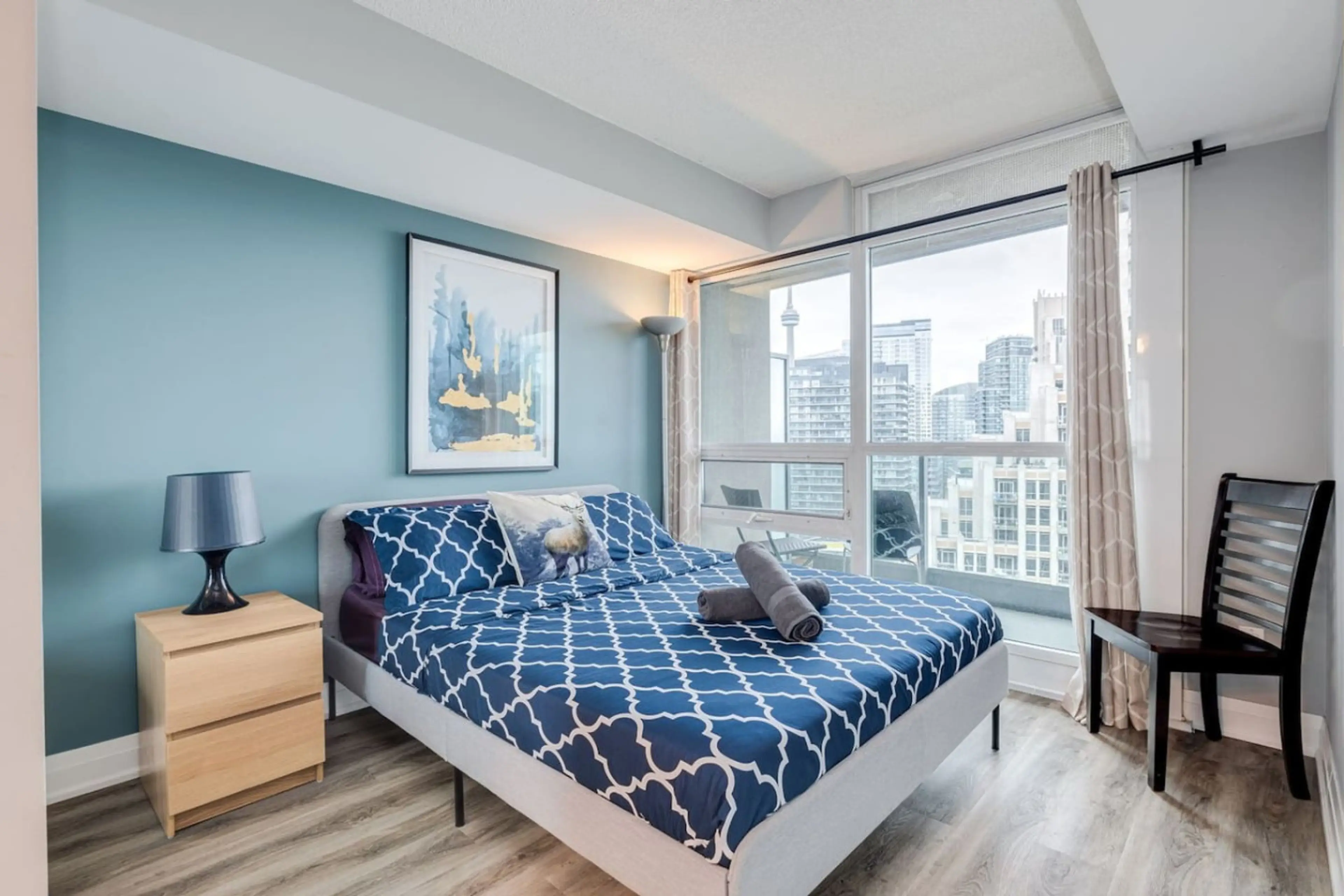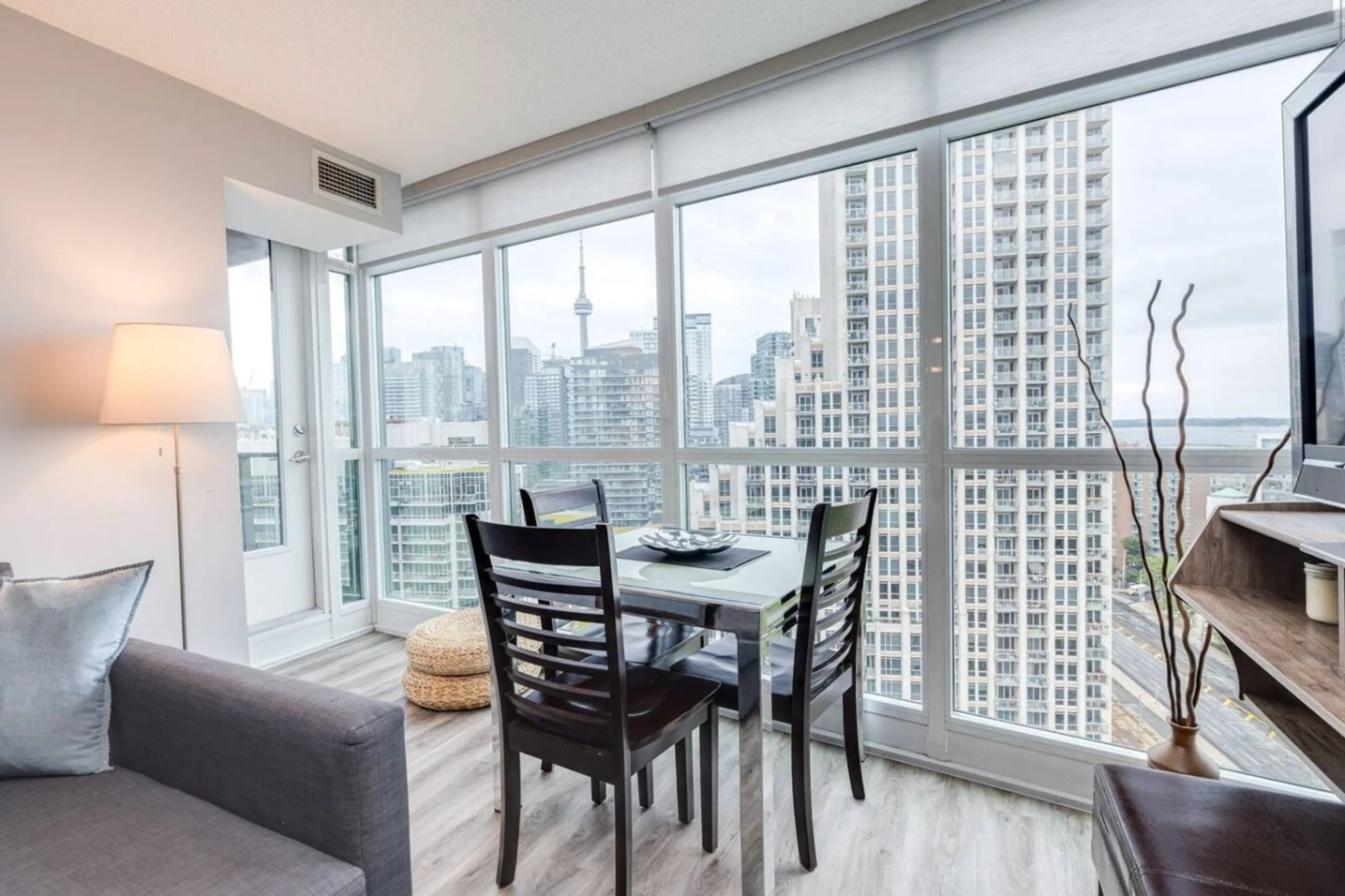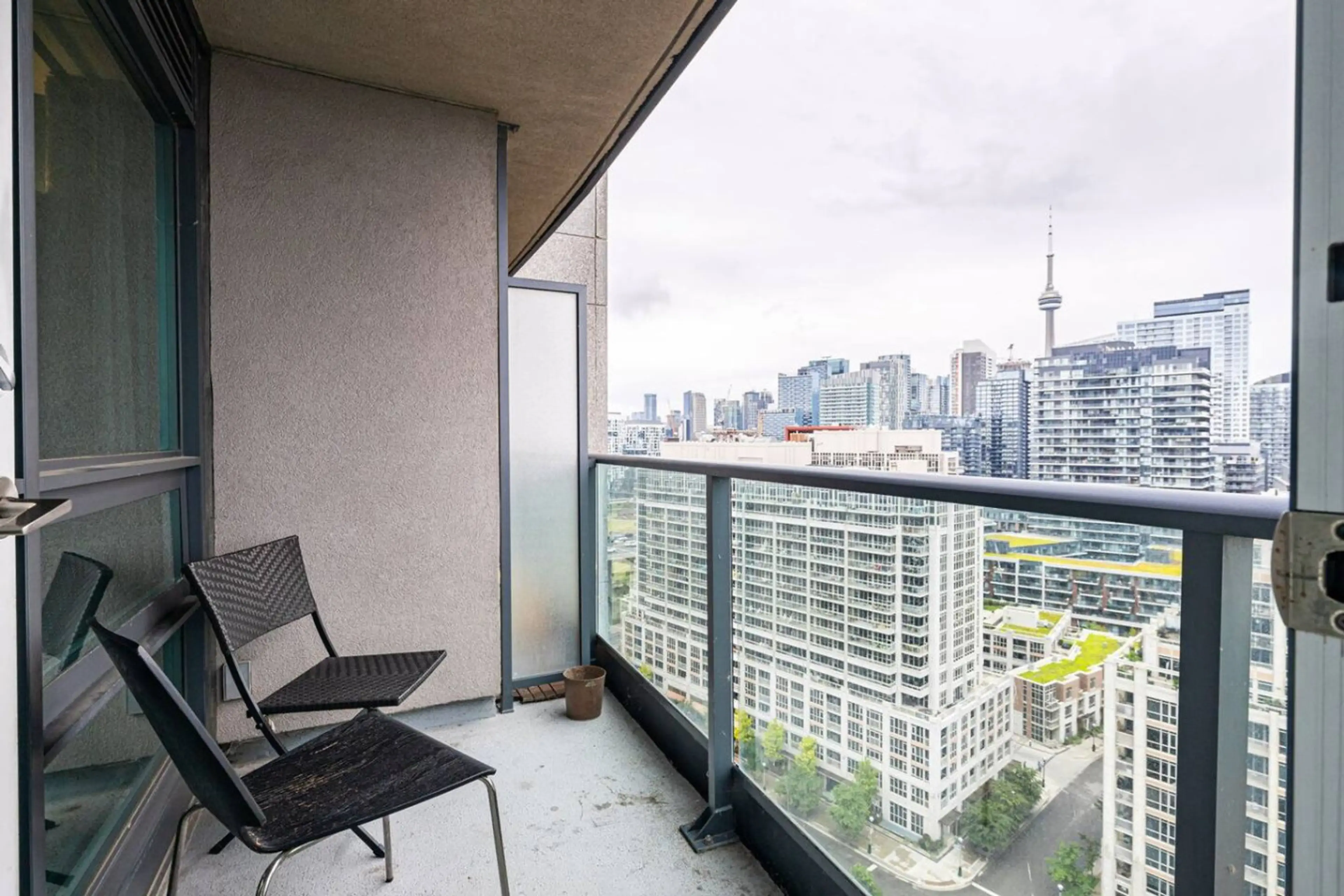 Modern 2BR + Den condo with stunning CN Tower & lake views. Enjoy a fully equipped kitchen, fast Wi-Fi, two bathrooms, in-unit laundry, and a private balcony. Steps to the waterfront, attractions, parks, transit, and dining. Includes secured parking. ✪ Property Overview ➜ Spacious 850 ft² / 83 m² a...